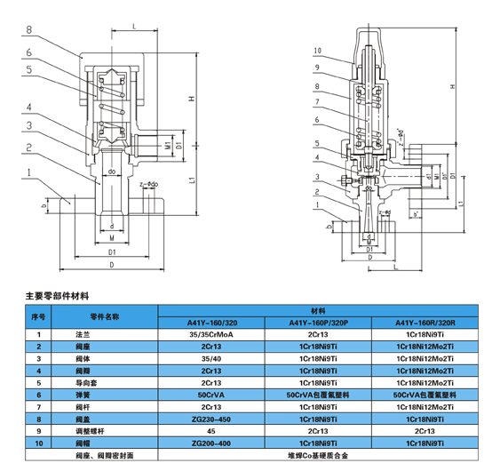 彈簧微啟式高壓安全閥(A41H-160/A41Y-320)適用于工作溫度≤200℃的空氣、氮氫混合氣、水等介質的設備和管路上。A41Y-160P/A41Y-320P型彈簧微啟式安全閥適于工作溫度≤200℃有腐蝕性的氣體或液體介質的設備和管路上,作為超壓保護裝置。當設備和管路內壓力超過允許值時,閥門自動開啟,繼而全量排放,當壓力降降至規(guī)定值時,閥門自動關閉,保證設備和管路的安全運行。