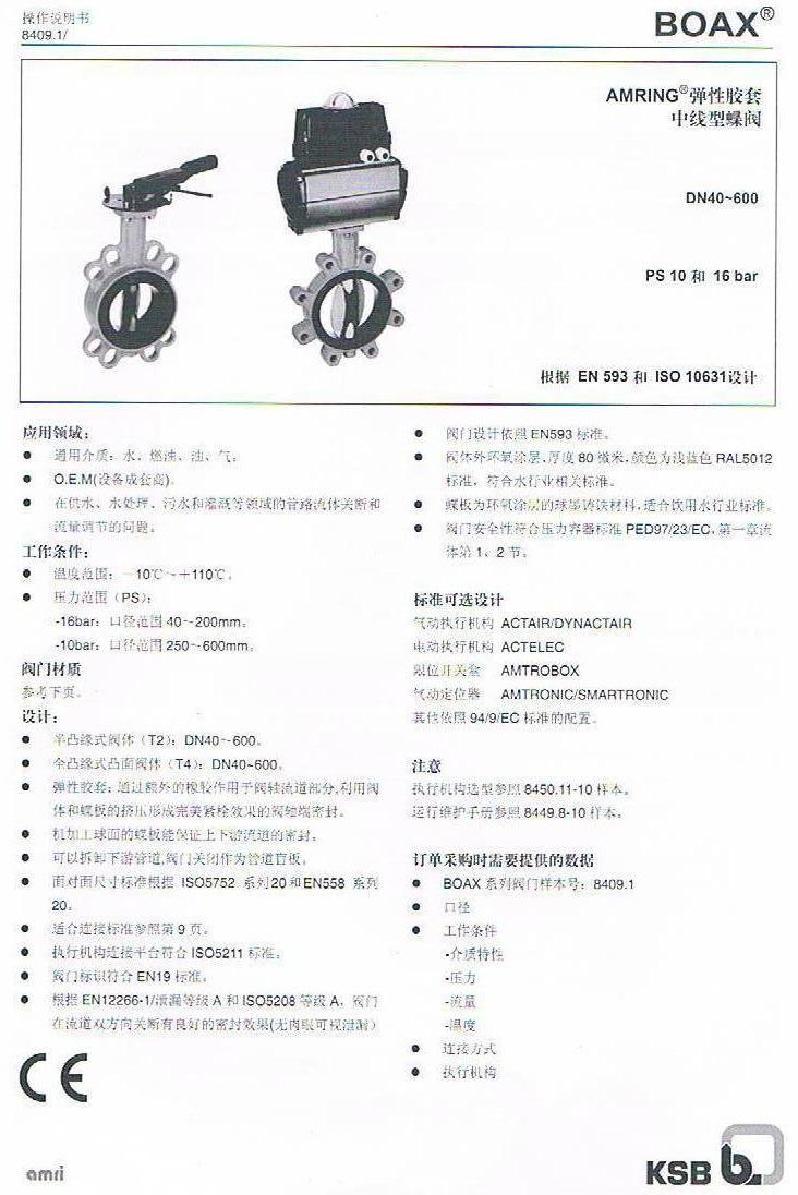 凱士比KSB閥門:凱士比KSB蝶閥型號BOA-X應用領域: